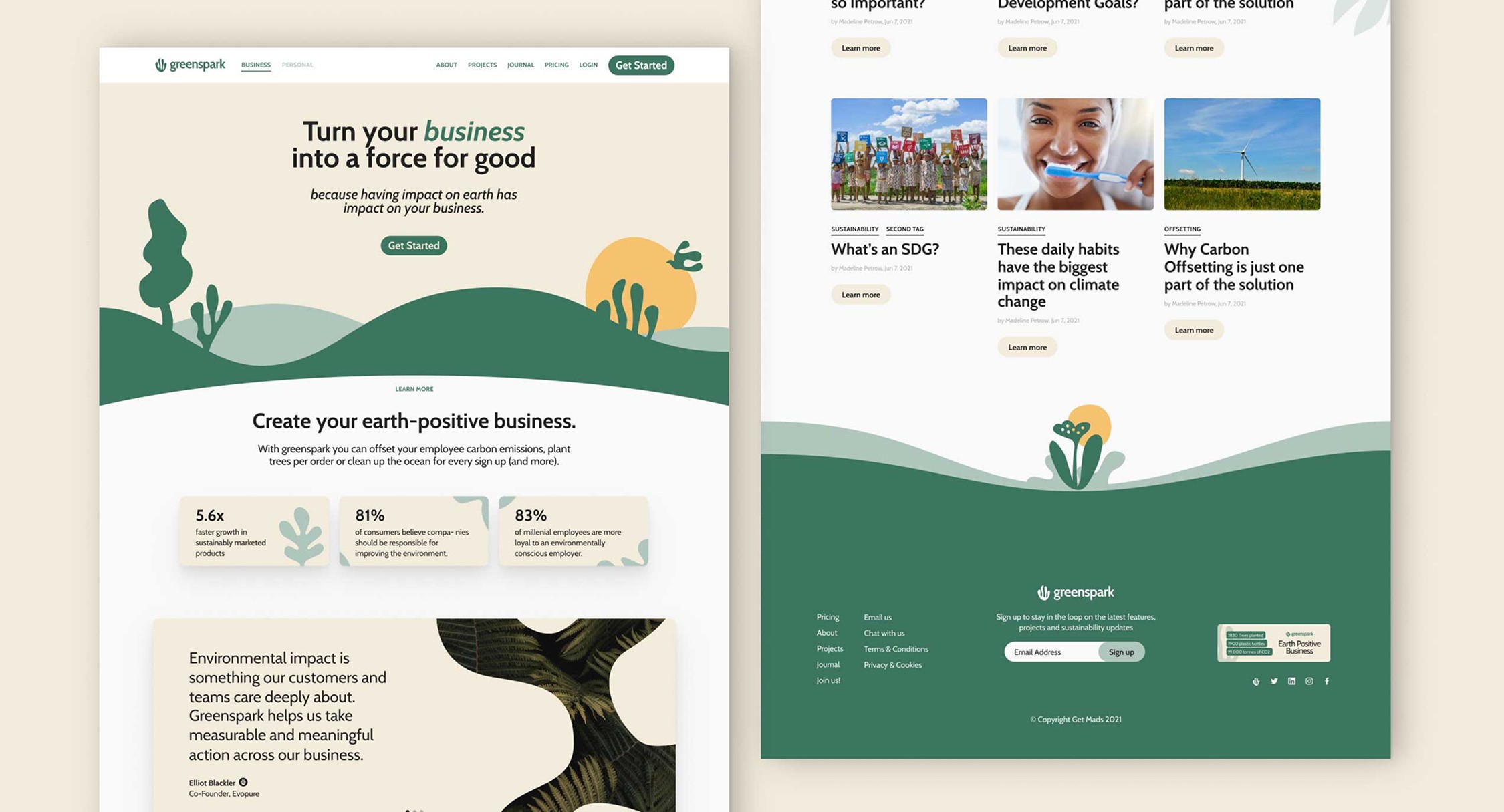 Greenspark connects e-commerce customers with projects that advance the UN’s Sustainable Development Goals. At Newtide, we guided the founders through a process of self-discovery as they defined their emerging startup, translating their mission-driven values into a visual brand and software products now used by thousands.